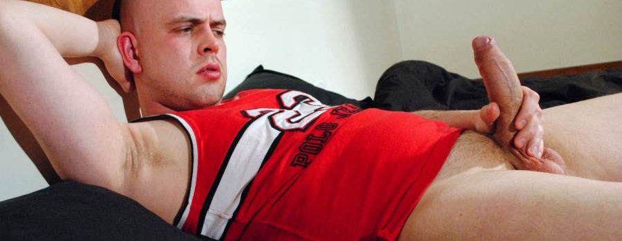 Jon Bull rubs plenty of spit around the head, getting it nice and juicy, and shows off his seriously fat meat in different positions, jerking off for us, laying on the bed, then standing up, till he works himself up to cumming, and shoots his creamy white spunk into the palm of his hand, rubbing the thick hot cum all over his still throbbing dick..