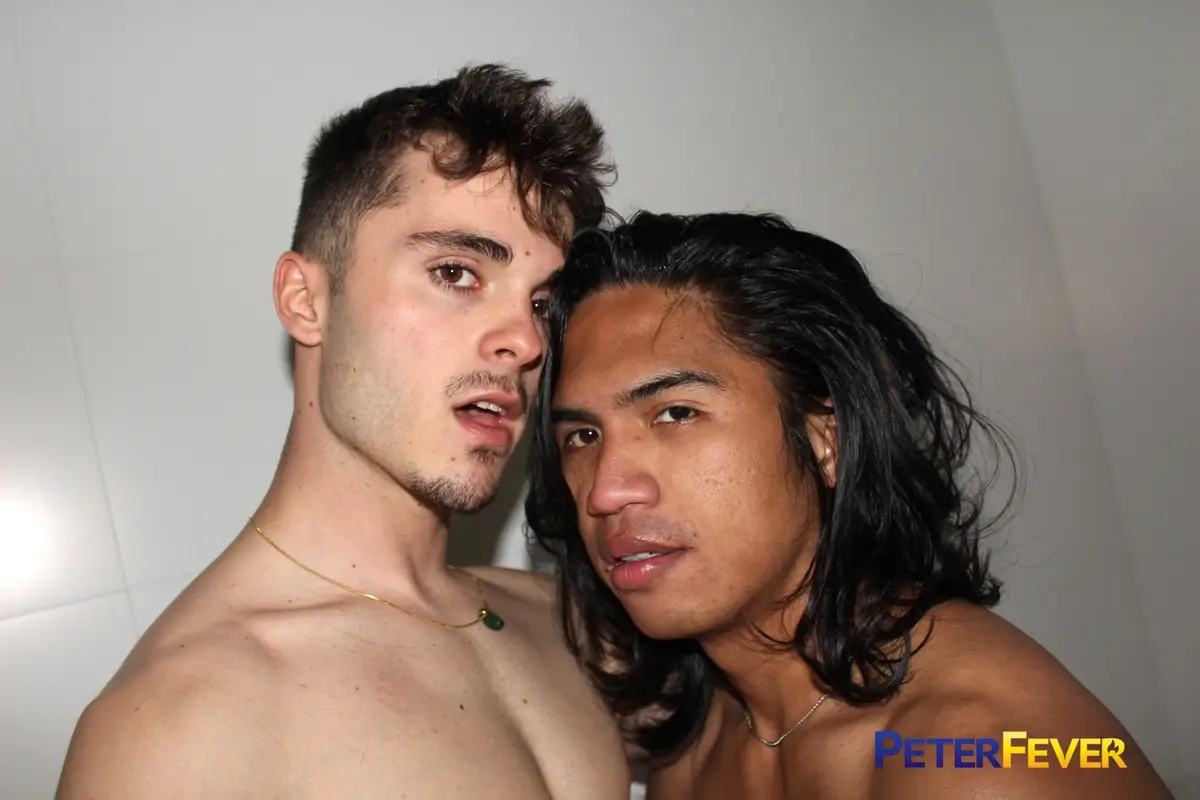 It’s getting pretty sweaty and hot in Peter Fever’s locker room when newcomers Hugo Dupre and Alon Kemey walk in to film their first scene. Hugo enters the locker room and is immediately drawn to Alon’s perfect butt. Alon turns around and kisses him, leading them both to the showers. Alon gives Hugo a blowjob before Hugo turns him around and takes a closer look at his smooth behind. After some foreplay, they engage in bareback action against the shower wall. Hugo finishes by cumming on Alon’s face while Alon reciprocates.