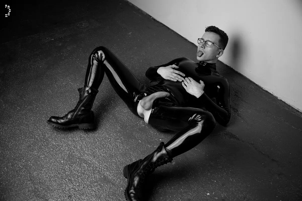 Meet David, a rubber fetishist who is so flexible he can even lick his own leather boots. In this solo for Frock The World, he demonstrates not only his attraction to rubber as a fetish, but also the incredible capabilities of his body. Many tops would love to be with this flexible dude, no doubt.