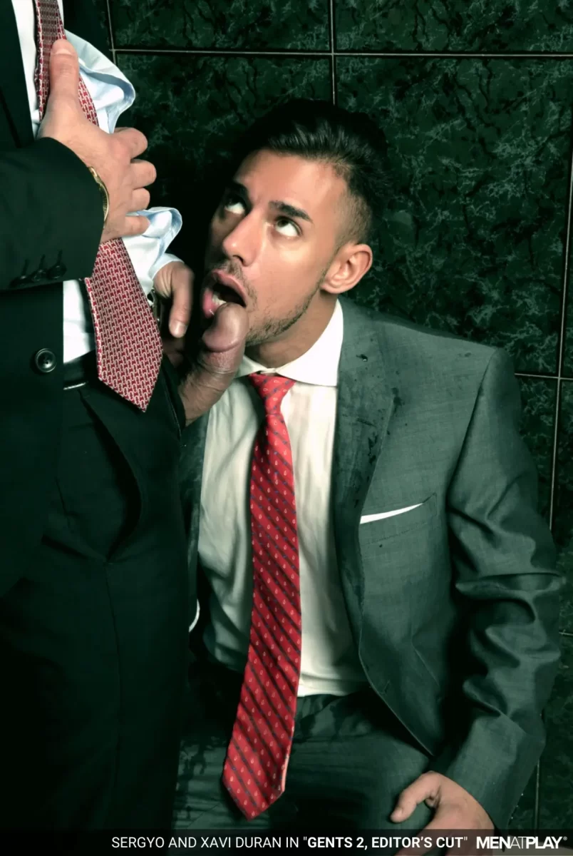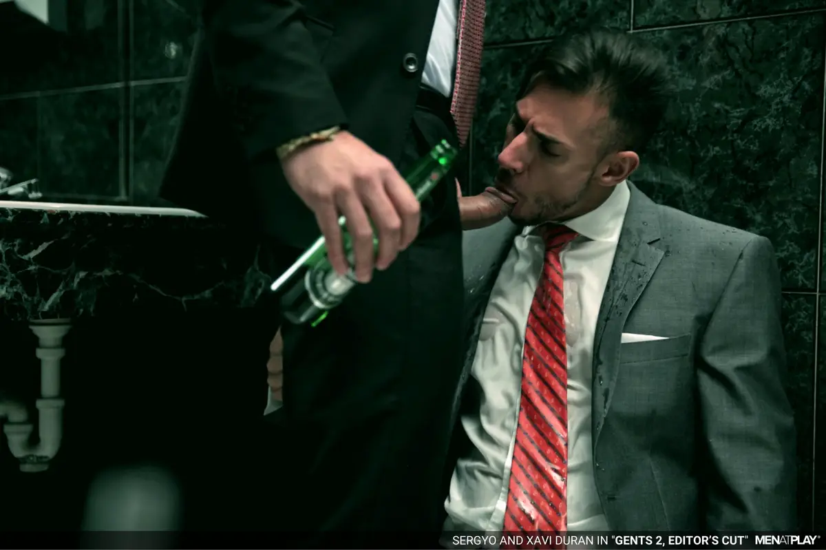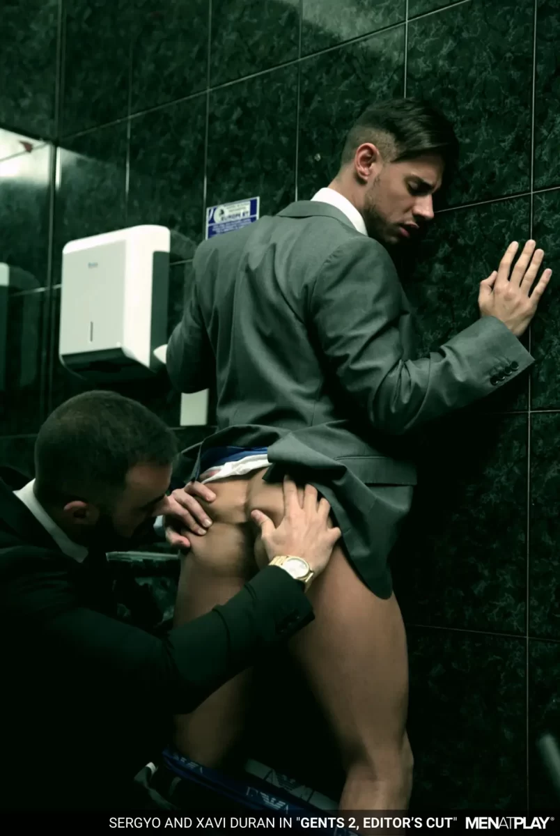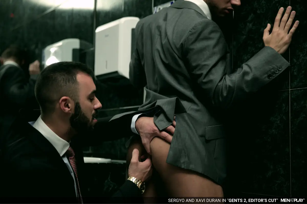 Xavi Duran and Sergyo Caruso indulge in this grimy, wild, public restroom session, where corporate repression collides with filth. Xavi—suit-clad, pent-up, and oozing dominant energy—abandons his desk-job drudgery to hunt for sleaze in a notorious cruising spot, his thick, uncut cock already leaking at the thought of anonymous worship. Enter Sergyo Caruso, a lean, muscled mechanic radiating “straight-guy curiosity,” whose hesitant glances at the urinal send Xavi into predator mode.