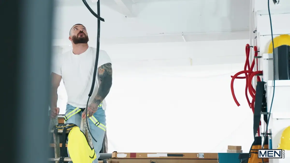 In the latest scene of Alpha Builders, the construction site becomes a filthy playground, when welder Alex Marte spots Kinkoer perched on a ladder, his jeans-clad ass begging for attention. Tattooed muscles flex as the burly coworkers collide—Alex rips Kinkoer’s jeans open, nuzzling his hole before tongue-fucking it raw.