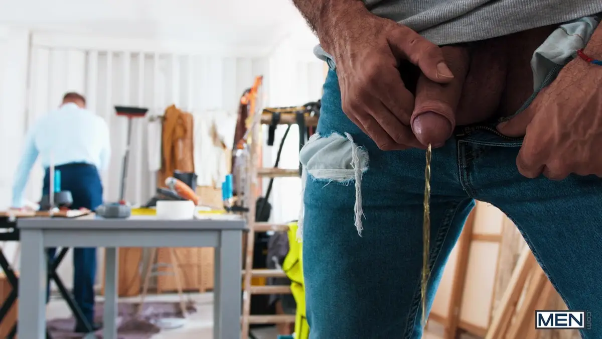At a bustling construction site, builder Jacob Lord is engrossed in his work when architect Ross Hurston unexpectedly arrives. Unaware of Ross’s presence, Jacob decides to save time by urinating into a nearby bucket. The sight sends Ross into a fit of anger, his professional demeanor shattered by the builder’s blatant disregard for decorum. However, Jacob, unfazed and unapologetic, issues a bold ultimatum: either Ross leaves or he makes himself useful by blowing him.