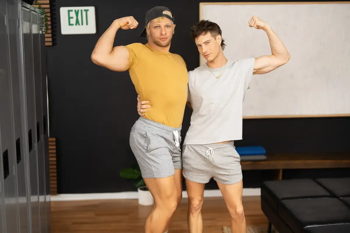 After his workout, Mu chats with Ryan in the locker room, where Ryan can’t help but notice Mu’s toned physique, particularly his ass, which looks “good enough to eat.” Mu strips down to his jockstrap, teasing Ryan, who can’t resist giving Mu a taste. The encounter quickly escalates into raw sex, with Ryan penetrating Mu from behind. They switch positions to missionary, Mu’s legs lifted high as Ryan pounds him relentlessly.