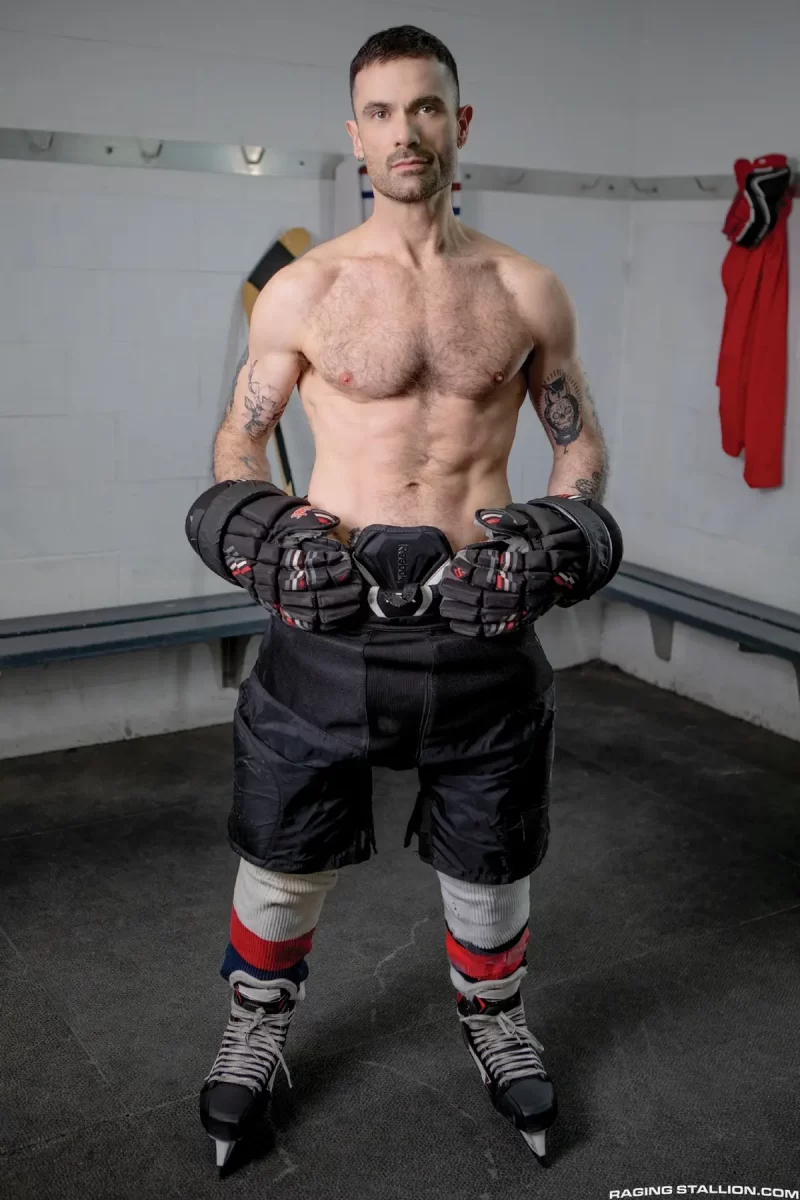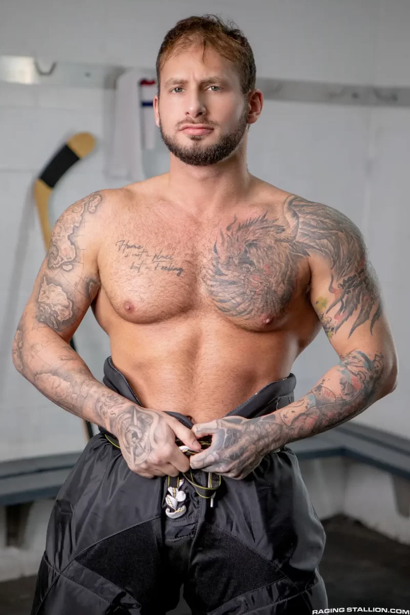 Tito Patron and Parker Savage transform post-game adrenaline into a steam-soaked, high-risk locker room romp where victory lust collides with raw, teammate-on-teammate hunger. The showers roar as Patron’s gaze locks onto Savage’s dripping, sculpted frame—water sluicing down his hockey-honed thighs, chest heaving from the game’s triumph. Savage doesn’t hesitate: he pins Patron against the slick tiles, thick cock slapping the goalie’s lips before plunging down his throat, gagging him with reckless force.