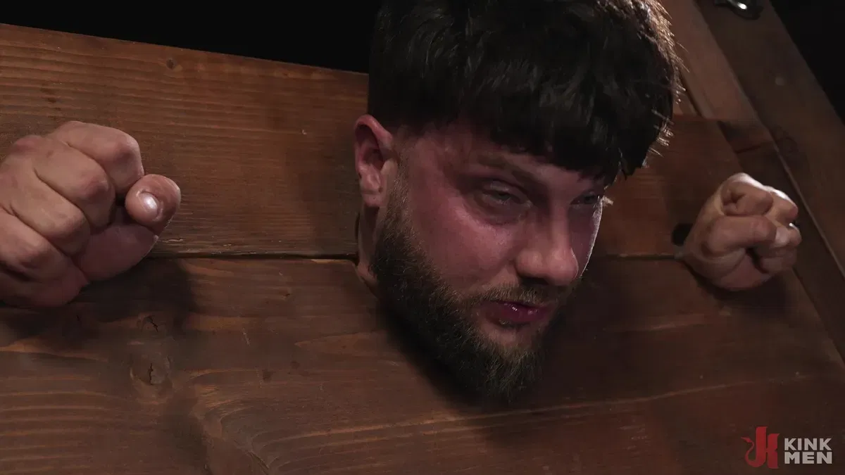 The flogger comes next, rhythmic strikes painting his skin red before they lock him into the stockade. Exposed and vulnerable, Daddy bypasses penetration entirely–wires clamp to Heath’s ass, currents jolting through his muscles until his thighs shake. A cold metal plug pierces him next, electrified and cruel, amplifying every twitch.