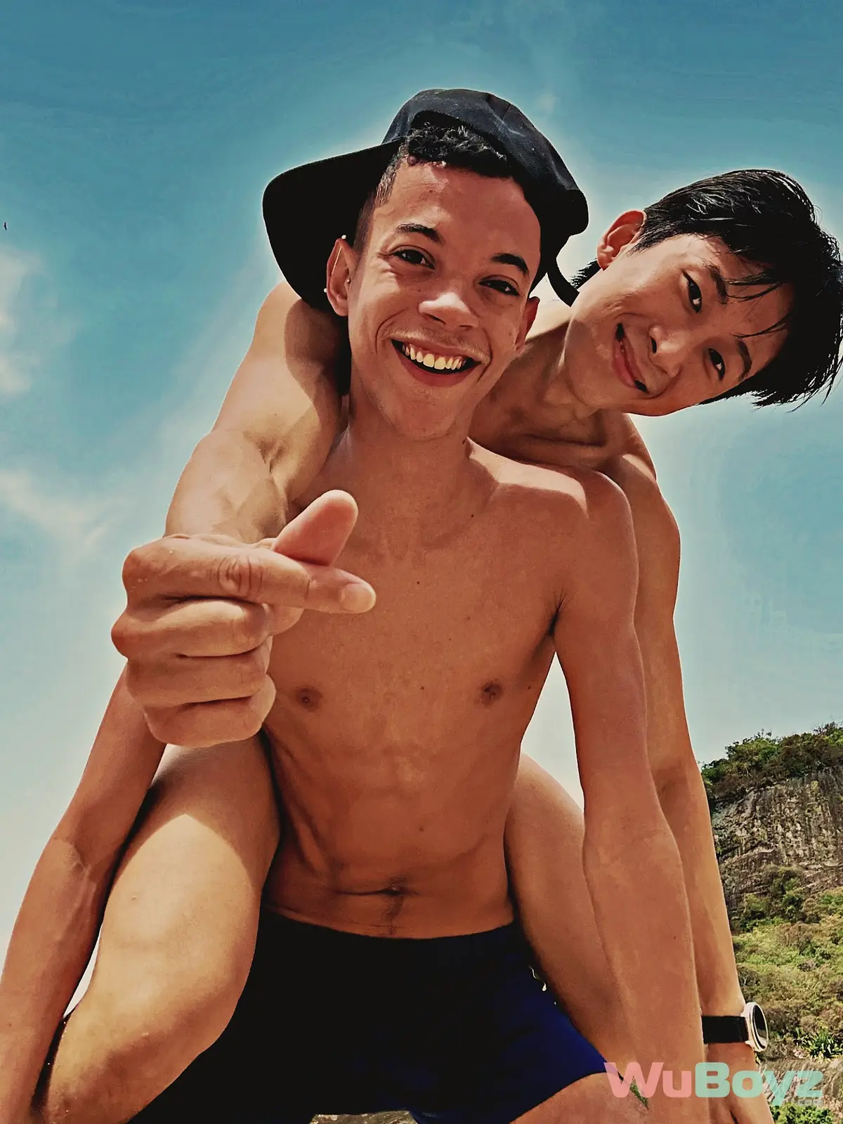Tyler Wu’s final day in Brazil finds him sprawled across sun-warmed sheets, salt air drifting through the open balcony doors. A knock interrupts the breeze—Douglas Silvestre stands there, tousled hair catching the fading golden light, grinning shyly. Towering over Tyler, his lean frame radiates carioca magnetism, all sun-kissed skin and playful confidence. Tyler’s pulse quickens as Douglas steps inside, the door clicking shut behind them.
