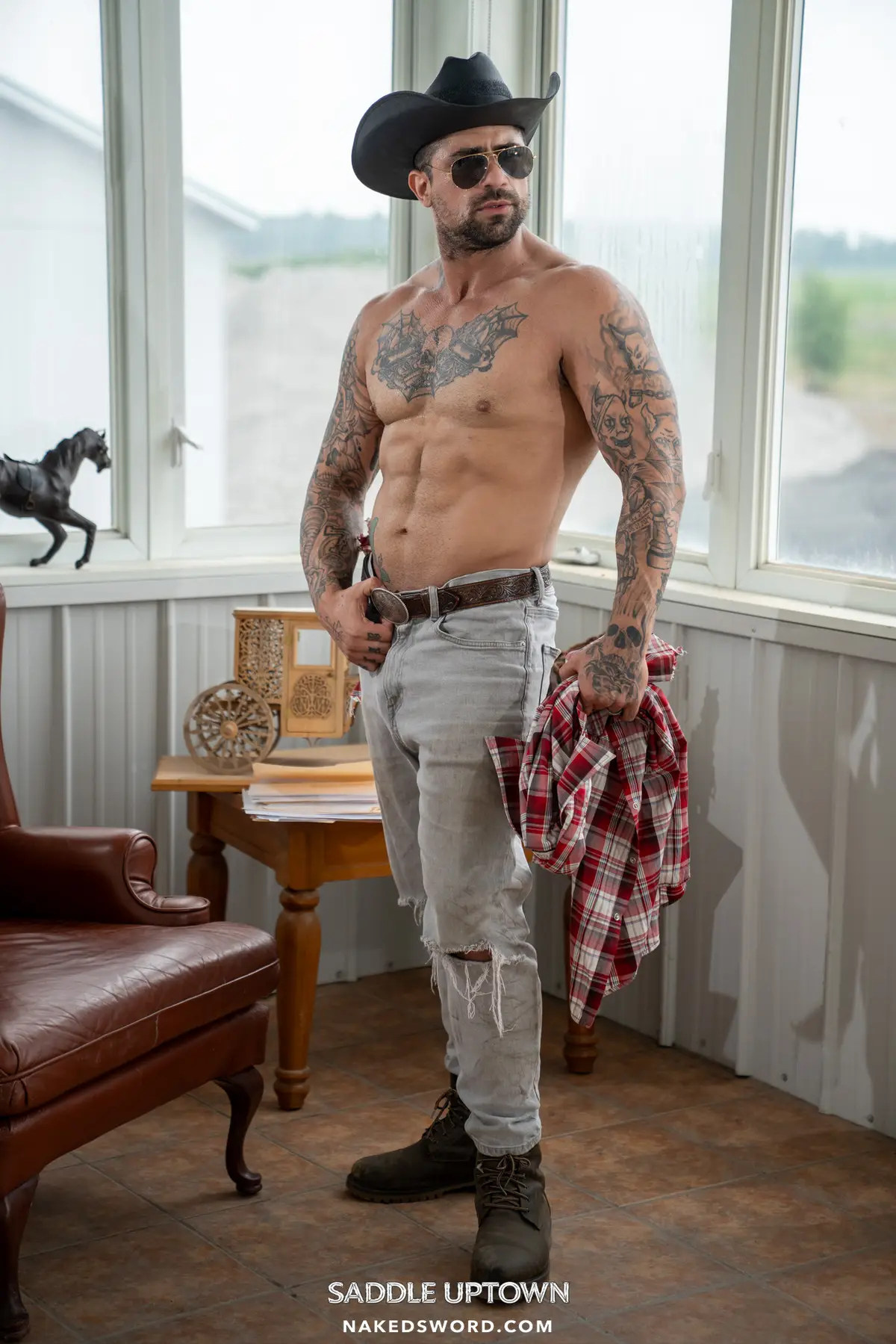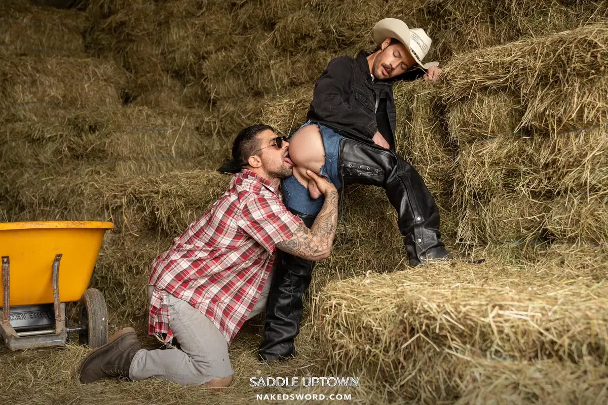 Saddle Uptown starts with a super hit! Ryan Bones & Theo Dore are gay cowboys and lovers. Wait until you see these gay cowboys in leather chaps, jeans, and everything cowboys wear. So sexy men and such cool bareback action!