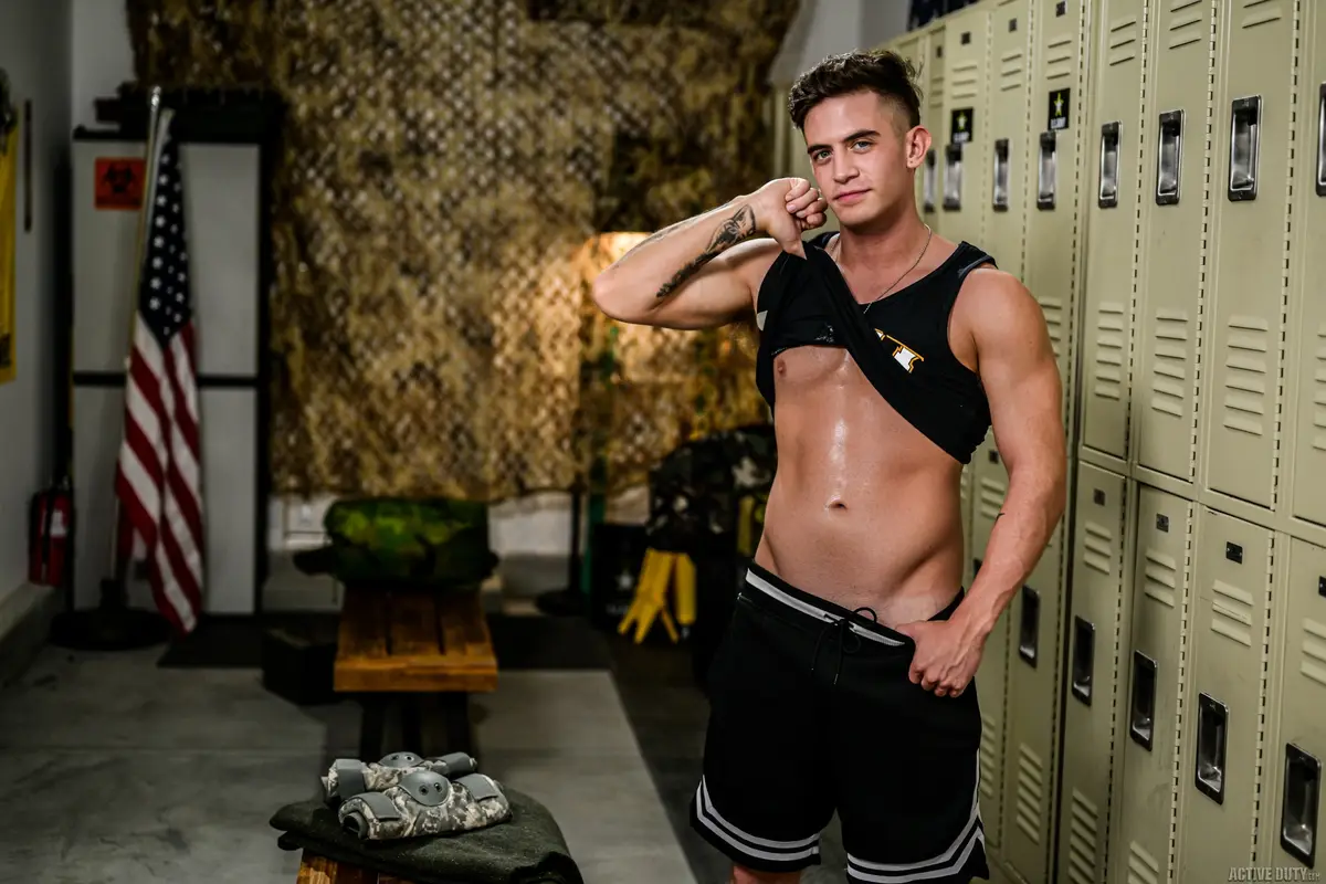 Are you ready for two 100% slutty servicemen? When Trevor Brooks discovers the secret time the base locker rooms empty out, he meets Daniel Evans, and you are about to witness something truly raw. You can almost feel the tension building as Trevor Brooks finally lets go, his hands exploring Daniel Evans with a hunger you can understand.