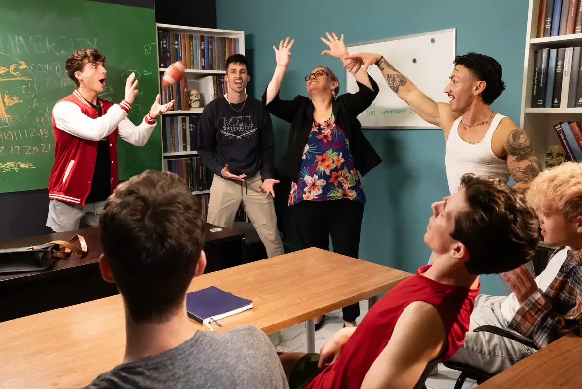 Backrow antics get hotter when Siren Santiago joins, but the real MEN magic happens after the professor storms out. Left alone, Leo and Kane’s chemistry explodes. The toy play evolves into raw, unfiltered gay bareback action as Leo takes control. Kane’s submission is breathtaking—every thrust from behind shows these MEN know exactly what they’re doing.