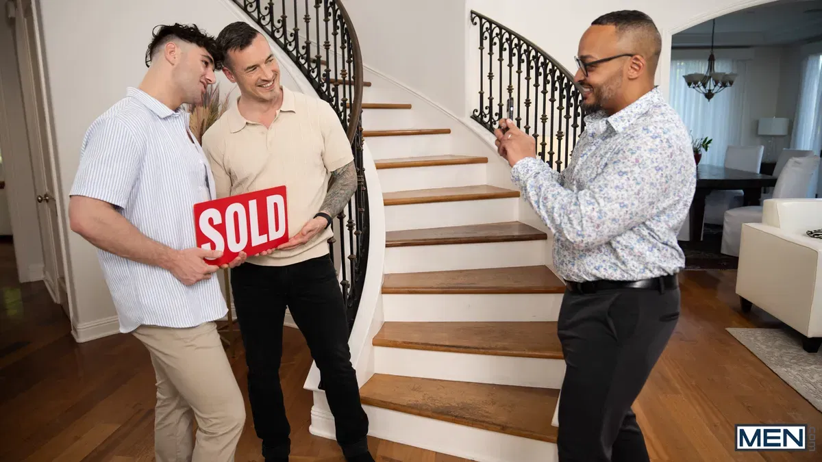 Are you ready for Dillon Diaz, Michael Boston & Derek Kage’s cool threesome? Realtor Diaz finally sells an extravagant house, but little does he know that the journey to this success is filled with hot husband surprises! Get ready for an intense gay menage a trois scene, bursting with spicy sucking and hardcore fucking.