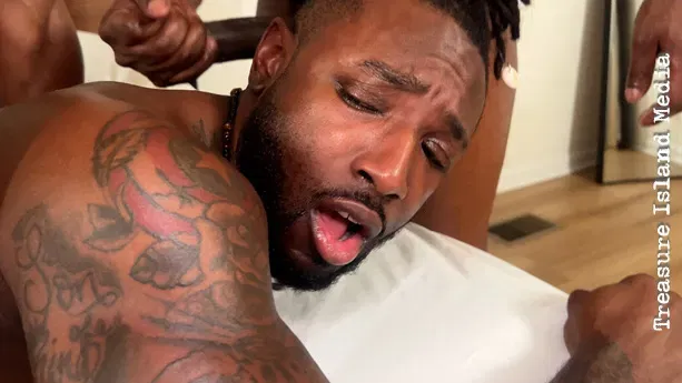Trophyboi_ATL and Goodboi_ATL descend upon the formidable muscle bottom Daddi Decent for a scene of pure, unadulterated domination. The raw, unapologetic energy of Treasure Island Media is on full display in this bareback session, a must-watch for fans of intense, no-holds-barred gay action.