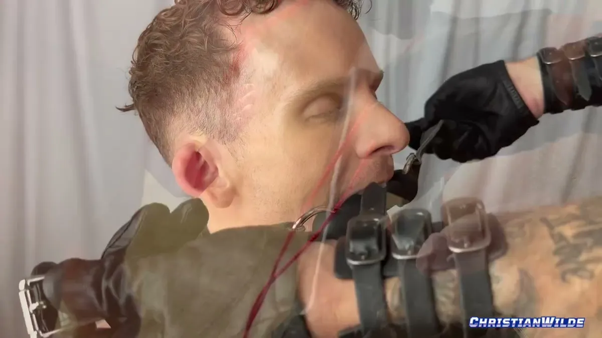 This isn’t just a scene; it’s a possession. Christian Wilde establishes dominance from the first frame, his ensemble of leather and harness signaling the raw power play to come. He expertly transforms Dylan Tides into his eager plaything, taking luxurious time to bind, blindfold, and explore every curve of Dylan’s fit physique. The chemistry is electric, a current of whispered commands and desperate pleas.