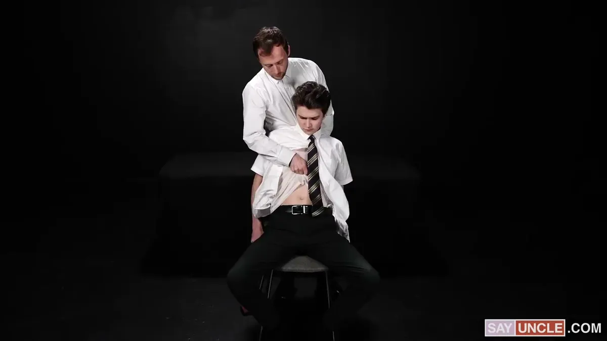 Watching Adam Tyme squirm under Peter Pean’s commanding presence was nothing short of electric. The dynamic between them is undeniable—Tyme’s eagerness to please clashes with Pean’s strict, no-nonsense demeanor, creating a chemistry that’s both raw and intoxicating. The way Tyme’s eyes dart between uncertainty and longing as Pean outlines the trials is a masterclass in submissive body language.